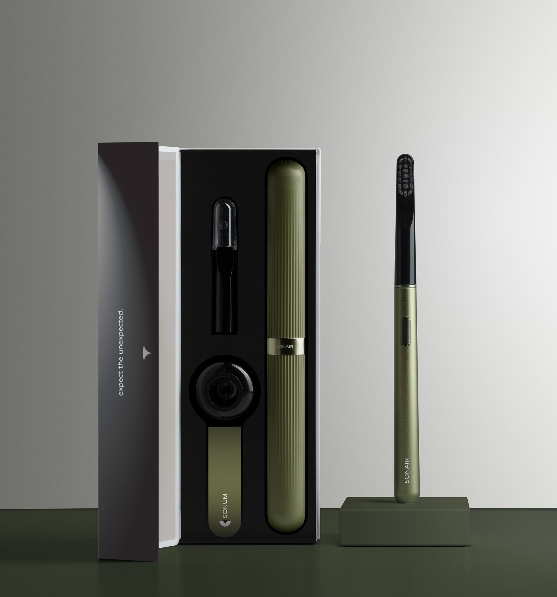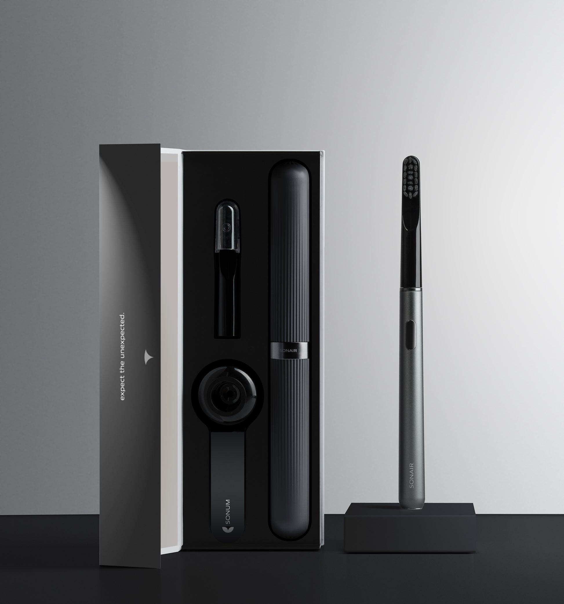 Meet Sonair, the first sonic toothbrush developed in Romania by a dentist. Crafted from premium aluminum and weighing just 51g, Sonair combines sleek design with cutting-edge performance. With over 30,000 sonic vibrations per minute, three cleaning modes (Soft, Boost, Pulse), and DuPont bristle technology, it delivers a deep yet gentle clean every time.